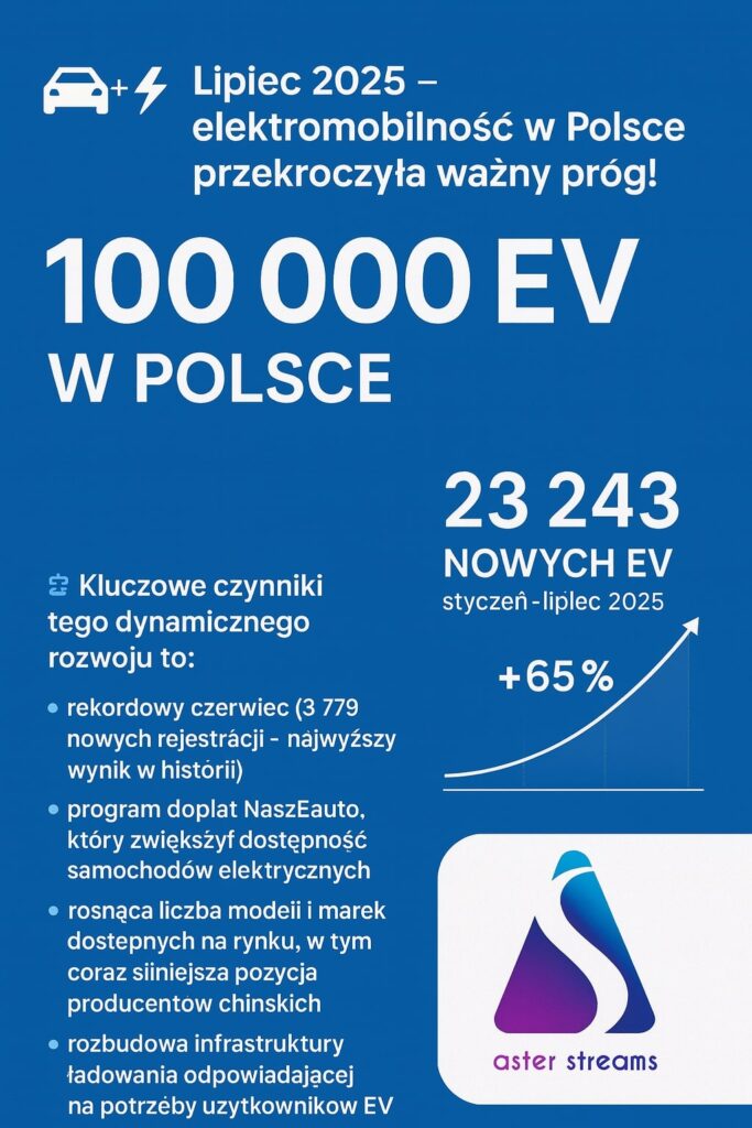 100 000 samochodów elektrycznych w Polsce – Aster Streams wspiera rozwój elektromobilności